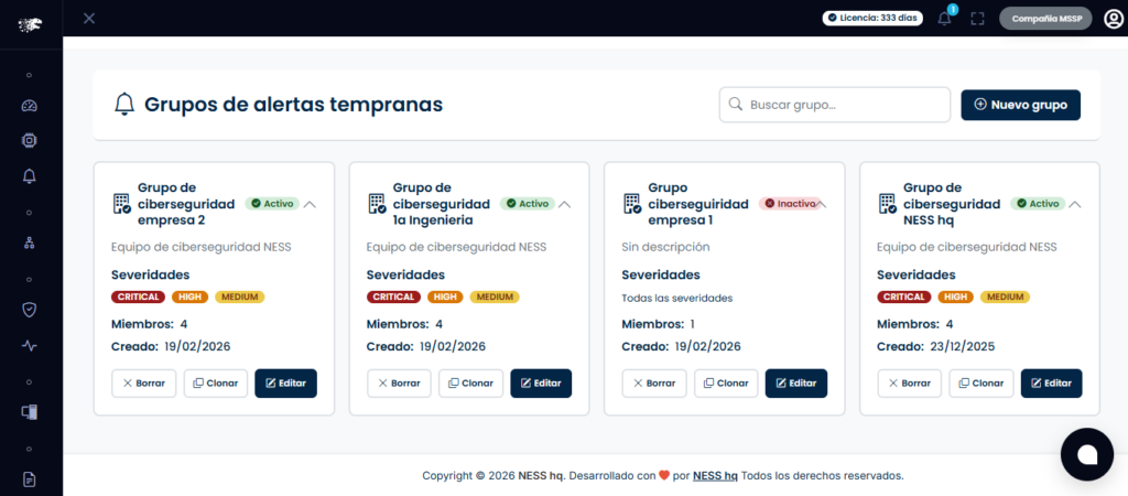 Multi-tenant scalability: Create targeted early-warning groups segmented by client. The MSSP receives threat intelligence focused exclusively on the relevant assets of each infrastructure.